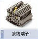 不同需要。主要品種有多位端子、雙層端子、大電流端子、穿墻端子及特殊端子。導線的進線方向有水平、垂直及斜向。導線的接線方式除螺絲壓緊連接外,還有彈簧壓接式端子。