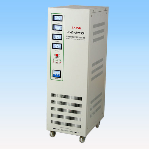 SVC-系列高精度全自動交流穩壓電源是由伺服電機、智能控制電路、自耦調壓器(或加補償變壓器)所組成的高品質交流穩壓電源,具有快速響應、效率高、穩壓范圍寬、無波型失真等優點。全部產品設有過壓保護、延時(選擇)保護和故障保護等功能,電壓雙向指示,功能更完善,更安全可靠。廣泛適用與家庭用電和工農業生產、科學研究、國防、通訊和醫療衛生領域,是目前性價比較高的一類交流穩壓電源。