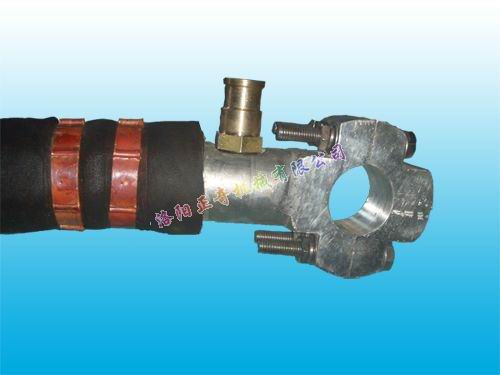 三、電極與外套管的連接,①600mm2以上的水冷電纜使用1Cr18Ni9Ti材質(zhì)的不銹鋼卡箍緊固,無(wú)磁性,不生銹;②600mm2以下的水冷電纜使用T3紫銅材質(zhì)的卡箍,在專用設(shè)備上擠壓緊固, 密封效果好,使用壽命長(zhǎng)。