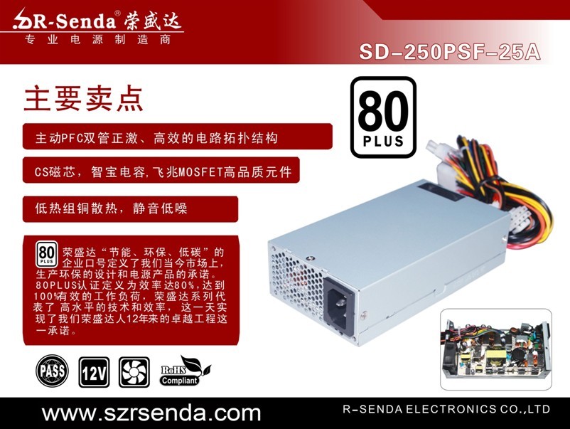 廣東刀片式1U電源 ATX輸出額定250W描述