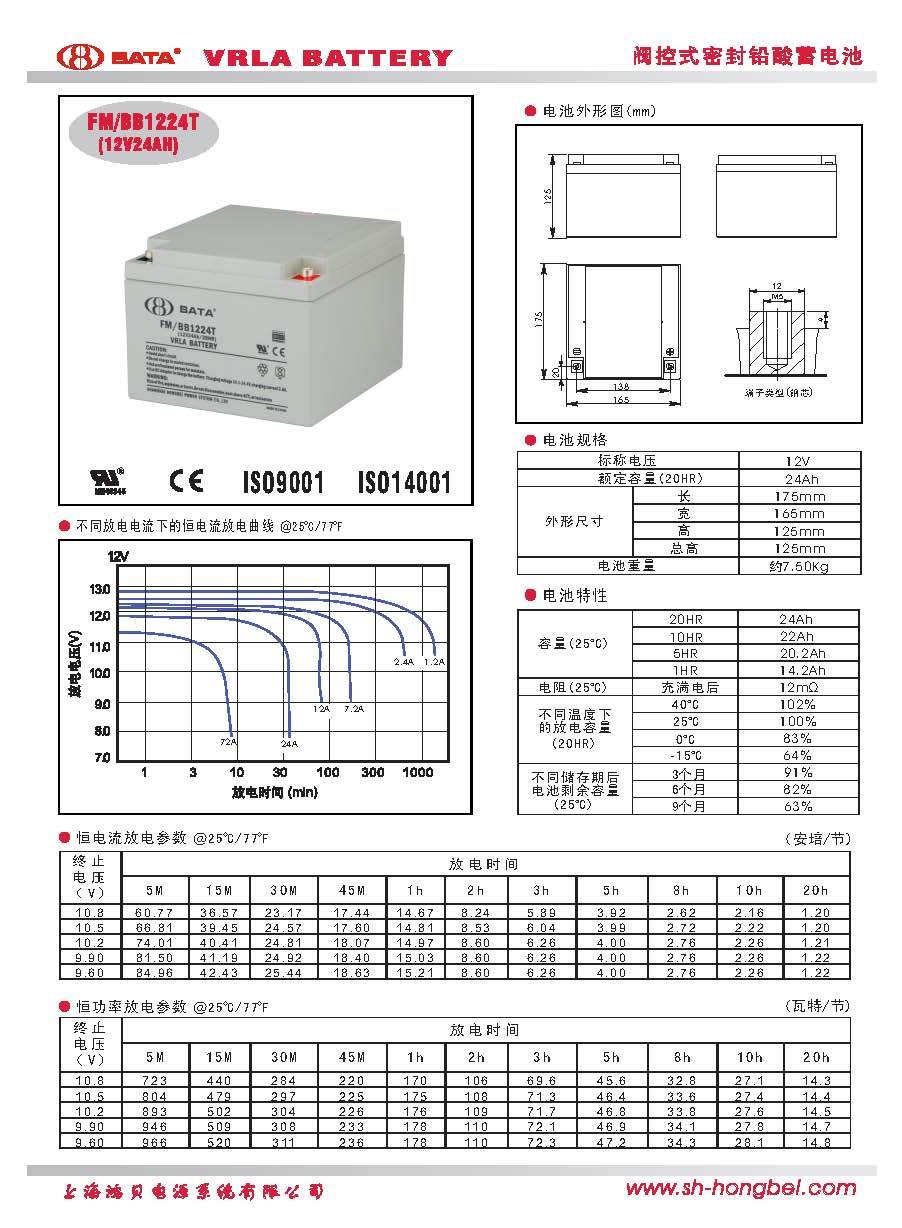 上海鴻貝12V24AH鉛酸蓄電池描述
