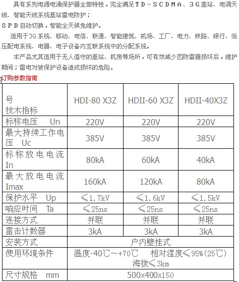 電源電涌保護器系列 HDI-80X3Z描述