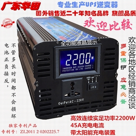 12V電池供電,空載電流小于400mA,功率2200W,效率高于93%,帶數字液晶顯示屏,全智能充電,最大電流45A,充滿自停,帶USB輸出接口(可以為手機充電),太陽能充電輸入接口(有防反接,過充電保護)。