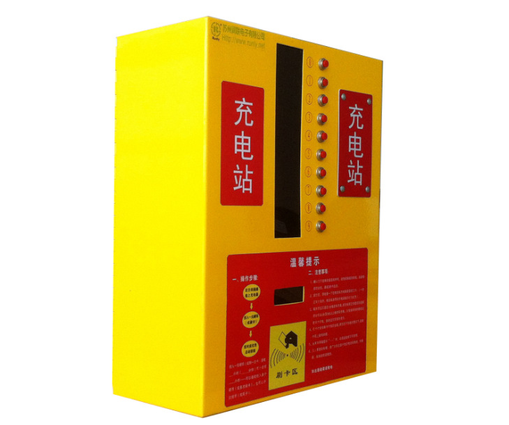 電瓶車(電動車)充電站產(chǎn)品由一臺控制主機外殼加十個兩孔插座構成,內(nèi)裝有電表及空氣開關,產(chǎn)品有十路供電通道,每路通道都有其獨自的顯示窗口與控制按鍵。用戶刷卡后,按下其中的一個控制按鍵,主機就會給對應通道的插座供電,各通道的工作狀態(tài)與工作時間,可以通過其對應的顯示窗口顯示出來。考慮為適應不同型號電動車,充電時還是需要插接上電動車自帶的充電器。
