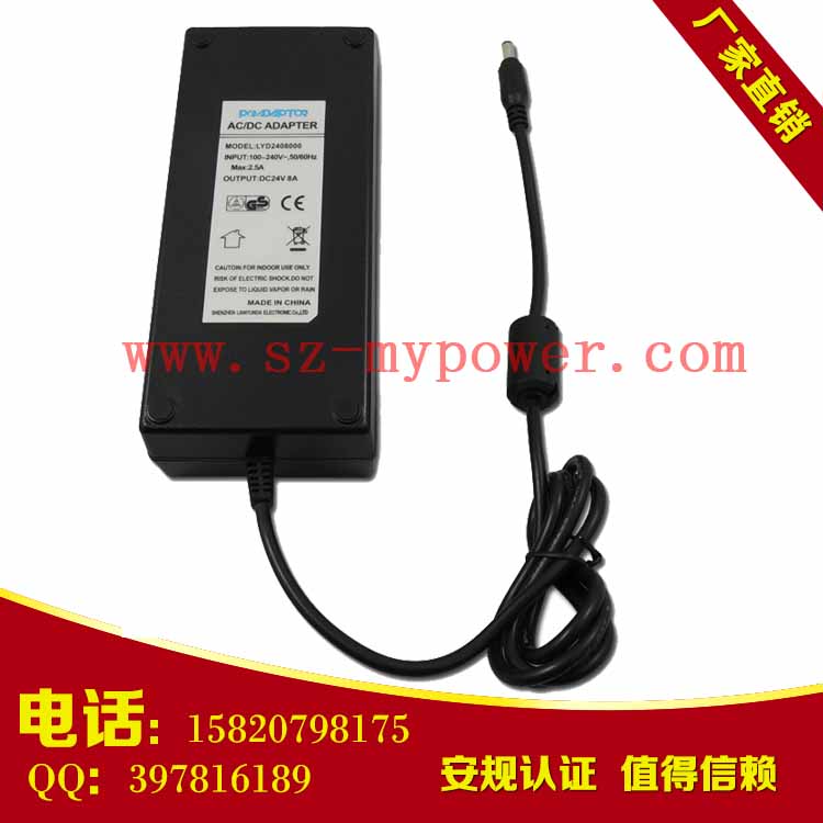 24V8A電源適配器,電源適配器產品適用于LED燈條、LED照明、平板電腦、空氣凈化器、按摩器、顯示器、安防監(jiān)控、電動工具、電池充電器等,電源適配器通過CE、UL、class2、TUVGS、KC、PSE、SAA、FCC、EMC、LVD等認證!