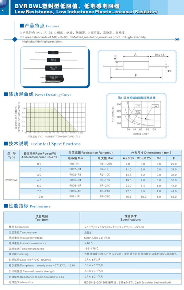 供應金盾直銷BWL/BVR塑封型低阻、低電感電阻器