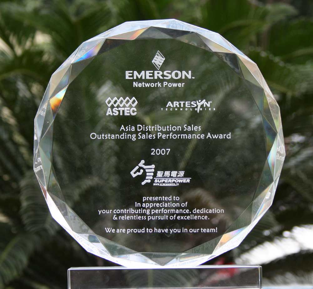 2007年度圣馬電源獲Astec/artesyn亞太區(qū)銷售第一名獎(jiǎng)
