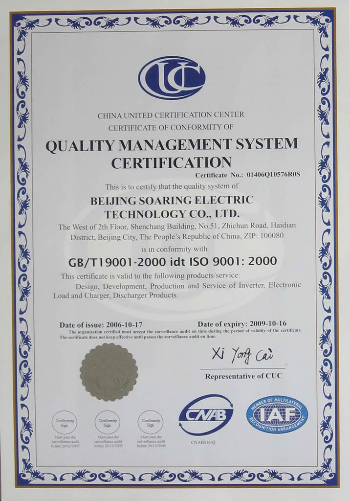 ISO9001質量體系認證證書