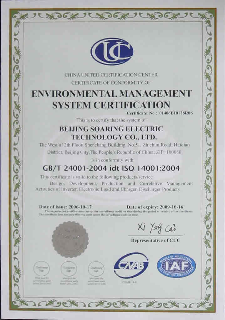 ISO14001環境體系認證證書