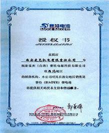 (臺灣)賽特免維護蓄電池西北辦事處授權證書