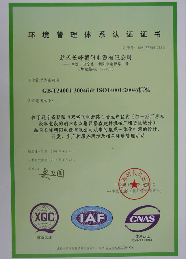 環境管理體系認證證書