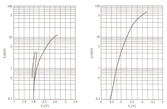 圖4 典型GaAsP正向電壓與導通電流的對應關系 圖5 典型InGaN正向電壓與導通電流的對應關系