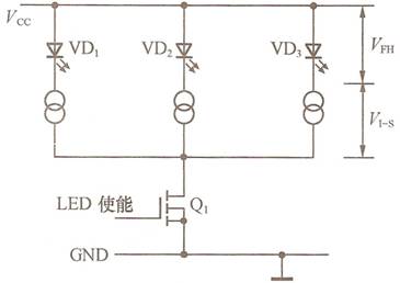 如果將VCC增大到VF的10倍以上,可以減少VF變化的影響,但耗電較多,不符合電池供電產品的需求。對于采用單節鋰離子電池供電的系統,鋰離子電池電壓的變化范圍為3~4.2V。如果白光LED的偏置電路只是簡單地由鋰離子電池和限流電阻組成,輸出亮度將會產生明顯的變化。合理的方案應該是采用電流偏置電路。