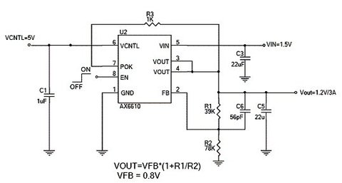 AX6610-6615應用上提供高抗噪聲功能(PSRR高達-65dB)及穩定的工作電壓,輸出電壓的瞬態響應快,而且提供Power-OK輸出功能,方便提供電源監測,輸出電容可適用于固態電容(鋁/鉭)及陶瓷電容(MLCC),其內部具有完整的系統保護功能包括軟啟動、低電壓鎖定(UVLO)、短路保護(SCP)、過溫度保護(OTP)及過電流保護(OCP)功能而不需使用外部多余組件即可做到上述功能而且使電路設計達到極小化的要求。