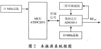 本文介紹了利用鎖相頻率合成芯片ADF4360-1為中頻射頻發(fā)信機設計本振信號源,給出了設計的關鍵參數(shù)、控制流程以及部分程序代碼。最后測得相位噪聲為-83 dBc/Hz@1 kHz,達到了基本標準。由于ADF4360-1內部集成VCO、外部通過單片機I/O口寫入控制字,因此該系統(tǒng)具有外圍電路簡單、調試方便、功耗和成本低等特點,可廣泛應甩于射頻電路系統(tǒng)以及無線通信系統(tǒng)中。■