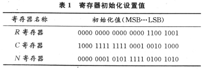 從ADF4360-1外部輸入的信號有標準頻率源信號和控制信號,14位可編程參考R分頻器對外部頻率源信號分頻后得到參考頻率送至鑒相器。控制信號由時鐘信號CLK、數(shù)據(jù)信號DATA和使能信號LE組成。在CLK的控制下,串行輸入24位數(shù)據(jù)信號,暫時存放在24位數(shù)據(jù)寄存器中。在接收到使能信號LE后,先前輸入的24位數(shù)據(jù)根據(jù)地址位到達對應的鎖存器。