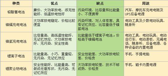 化學電源的分類及比較(圖)