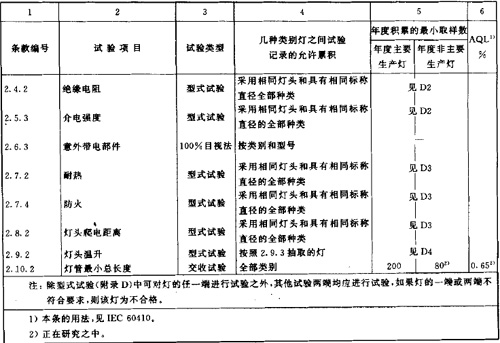 注:本標準的合格條件僅涉及安全指標,不考慮一般照明用雙端熒光燈關于光通量,顏色,啟動及工作特性的指標。