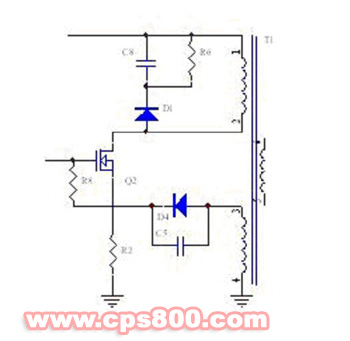 在開關管Q2截止期間,開關變壓器T1初級繞組存儲的能量經次級繞組的耦合,二極管整流供負載。