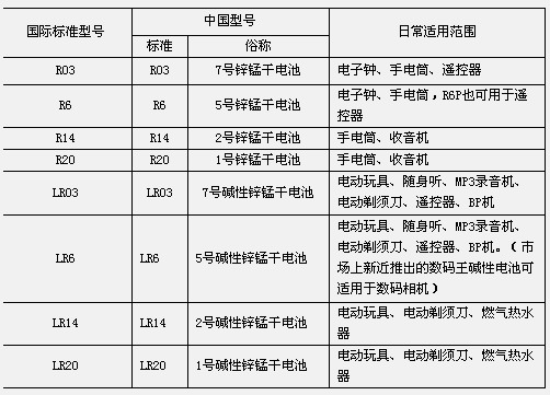 干電池的型號使用范圍及使用注意事項