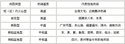 根據(jù)地?zé)豳Y源成因,我國地?zé)豳Y源分為如下幾種類型, 表4-1。