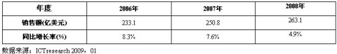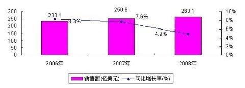 圖1 2006-2008年世界通信電源市場銷售額情況