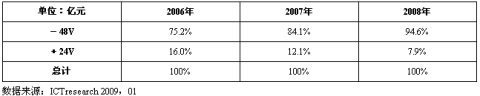 表3 2006-2008年中國通信電源市場產品結構規模比例分析