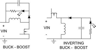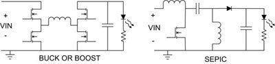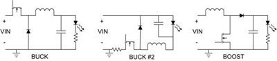 圖1簡單的降壓和升壓型拓撲為LED供電