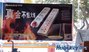 今年的3.15活動中,航嘉就舉辦了“真金不怕火煉”的全國范圍燒排插活動,通過現(xiàn)場的燒排插試驗,讓消費者真真切切體驗了一把純PC阻燃材料的“威力”。