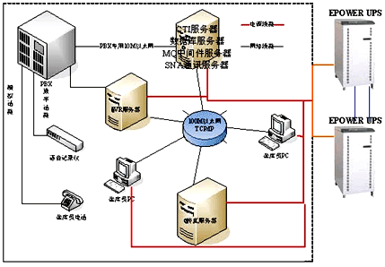 UPS主機需求: 銀行客戶服務中心作為銀行服務重要環節,可以采用科士達公司的EPOWER主機提供集中供電方案,EPOWER主機雙機并聯冗余系統具有運行穩定、輸出容量大、可以非常方便擴容的特點,可以很好的為服務中心的座席員PC和其他應用服務器提供潔凈、穩定不間斷電源。