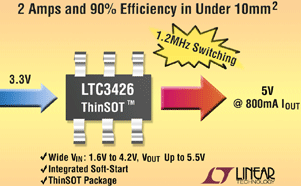 采用 ThinSOT 封裝的 LTC3426ES6 有現(xiàn)貨供應(yīng)。以 1,000 片為單位批量購(gòu)買,每片起價(jià)為 1.75 美元。