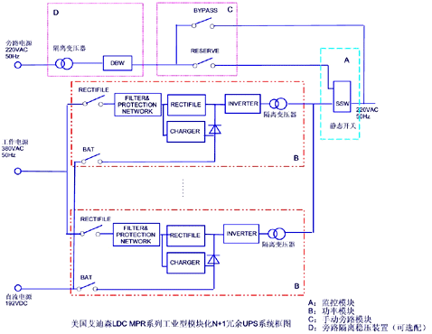 艾迪森LDC MPR系列工業企業專用UPS/INVERTER。采用多模塊直接并聯的設計理念,有效的提高了系統的安全性、可靠性、可維修性。