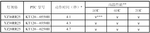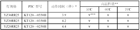 針對以上問題,上?铺馗叻肿硬牧嫌邢薰鹃_發出KT120-H 系列電子鎮流器專用PTC 熱敏電阻,克服了上述缺陷,能很好解決鎮流器的異常狀態保護問題。
