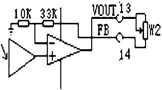 當輸入放大器的COM端電壓達不到0.5V時,可以通過輸出放大器調節放大倍數,如圖八 所示,W2可以取1~100K(多圈電位器)。