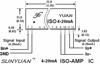 無源型IC內部包含有電流信號調制解調電路、信號耦合隔離變換電路等,很小的輸入等效電阻,使該IC的輸入電壓達到超寬范圍(7.5—32V),以滿足用戶無需外接電源而實現信號遠距離、無失真傳輸的需要。內部的陶瓷基板、印刷電阻工藝及新技術隔離措施使器件能達到3KVAC絕緣電壓和工業級寬溫度、潮濕、震動的現場惡劣環境要求。ISO 4-20mA系列產品使用非常方便無需外接任何元件即可實現4-20mA電流環隔離或信號一進二出、二進二出等變換功能。
