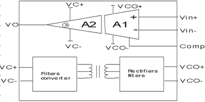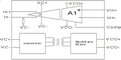 圖一 . 3. ISO APO系列電流輸出內置電源隔離放大器原理框圖