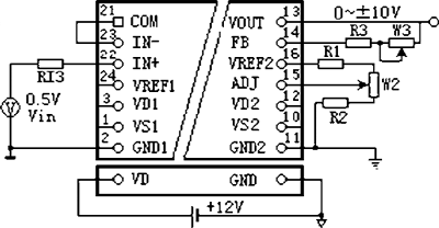 當輸入信號較小時可以采用圖六 同相放大電路,使輸入放大器的輸出(即COM端電壓)為0.45~0.48V之間,其余與圖九 相同。