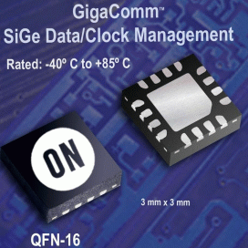 新的GigaComm器件——NB7L11M為12Gbps、8GHz、2.5V或3.3V SiGe差分時鐘驅動器,將輸入時鐘信號再生為兩個同樣的CML輸出信號。采用16引腳QFN封裝,每1,000件的批量單價為25.20美元(僅供參考)。