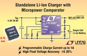 LTC4062 采用 10 引線 3mm x 3mm DFN 封裝。以 1,000 片為單位批量購買,每片起價為 1.95 美元。