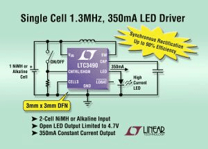 凌特公司(Linear Technology)推出為驅(qū)動(dòng)大電流白光LED而優(yōu)化的同步升壓型DC/DC轉(zhuǎn)換器——LTC3490。該器件可以高達(dá)90%的效率工作,最大限度地延長(zhǎng)了電池運(yùn)行時(shí)間,而1V至3.2V的輸入電壓范圍使其能從單節(jié)或雙節(jié)堿性/鎳氫金屬電池提供高達(dá)350mA的電流。2.8V至4V的輸出電壓范圍完全符合大電流LED的正向電壓要求。LTC3490為需要高達(dá)1W功率的LED應(yīng)用提供了恒定電流驅(qū)動(dòng)。