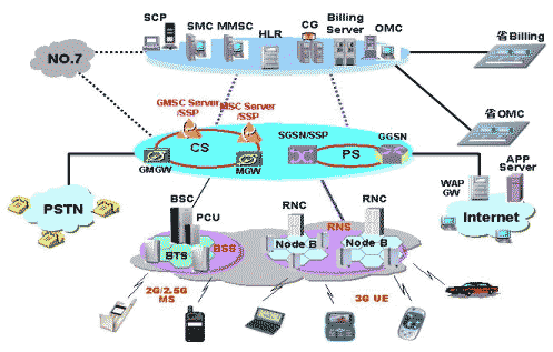 中興WCDMA系統(ZXW10)提供從核心網到無線網絡一系列產品,全系統由無線網絡子系統(ZXWR)和核心網網絡子系統(ZXWN)組成。核心網子系統包括ZXWN MSCS(MSCS是MSC Server的縮寫)、ZXWN MGW、ZXWN SGSN、ZXWN GGSN、ZXWN CG、ZXWN HLR,無線網絡子系統包括ZXWR RNC、ZXWR Node B。
