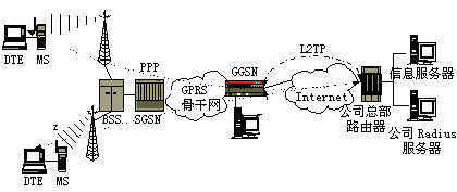 圖2 GPRS應用舉例-移動VPN業務