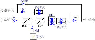 基本的可靠性,帶旁路的在線UPS,當UPS故障時,UPS將逆變輸出轉為旁路輸出,即由市電直接供電。解決了逆變器故障時,保證負載不斷電。