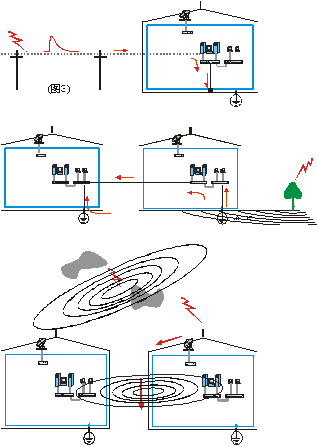 感應(yīng)雷還可以通過空間感應(yīng)侵入通信站的內(nèi)部線路,雖然經(jīng)過建筑物和機殼的屏蔽衰減后其能量大為減小,但站內(nèi)許多電信設(shè)備的抗過壓能力也很弱,如果處理不當也可能造成設(shè)備故障。