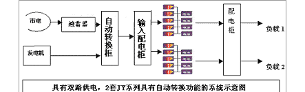 捷益達(dá)公司JY系列UPS可以提供兩臺互助冗余并機(jī)系統(tǒng)來滿足證券用戶對電力的需求,具體系統(tǒng)示意圖如下: