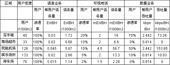 上表中,中興通訊通過(guò)大量的調(diào)研、分析和統(tǒng)計(jì),針對(duì)各種不同類型的室內(nèi)環(huán)境進(jìn)行了分類,分析每種環(huán)境下的用戶分布,考察室內(nèi)各種業(yè)務(wù)的組成情況,提出了完整的室內(nèi)環(huán)境下的業(yè)務(wù)模型。