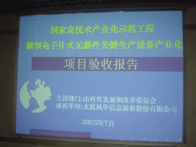 2005年8月5日,山西省發改委驗收組對我所控股的太原風華公司承擔的山西省“1311”調產項目暨“國家高技術產業化示范工程”----新型電子片式元器件關鍵生產設備產業化項目進行了竣工驗收。