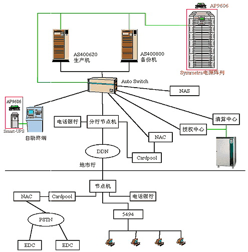 信用卡集中系統(tǒng)APC電源保護解決方案示意圖