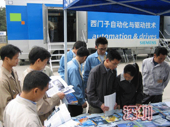 1月4日的早晨,長夏無冬,秋春相連的亞熱帶氣候,使一月份的深圳市依然陽光明媚,西門子自動化與驅動集團的PCS7和A&D兩部卡車隨著巡展腳步分別來到了深圳市的不同廠區進行了參觀拜訪。廠區的相關領導親自來臨現場并饒有興趣地參觀了卡車,資深工程師們為他們做出一系列的相關產品介紹。他們都深為卡車上展示的西門子的尖端工業科技所震撼,并肯定了西門子先進科技及產品為其廠區建設所作出的貢獻,同時希望以后能夠有更多的合作。