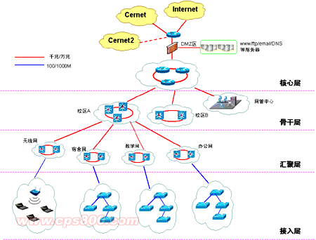 ·網絡吞吐能力高、速度快、系統規模大(多校區)